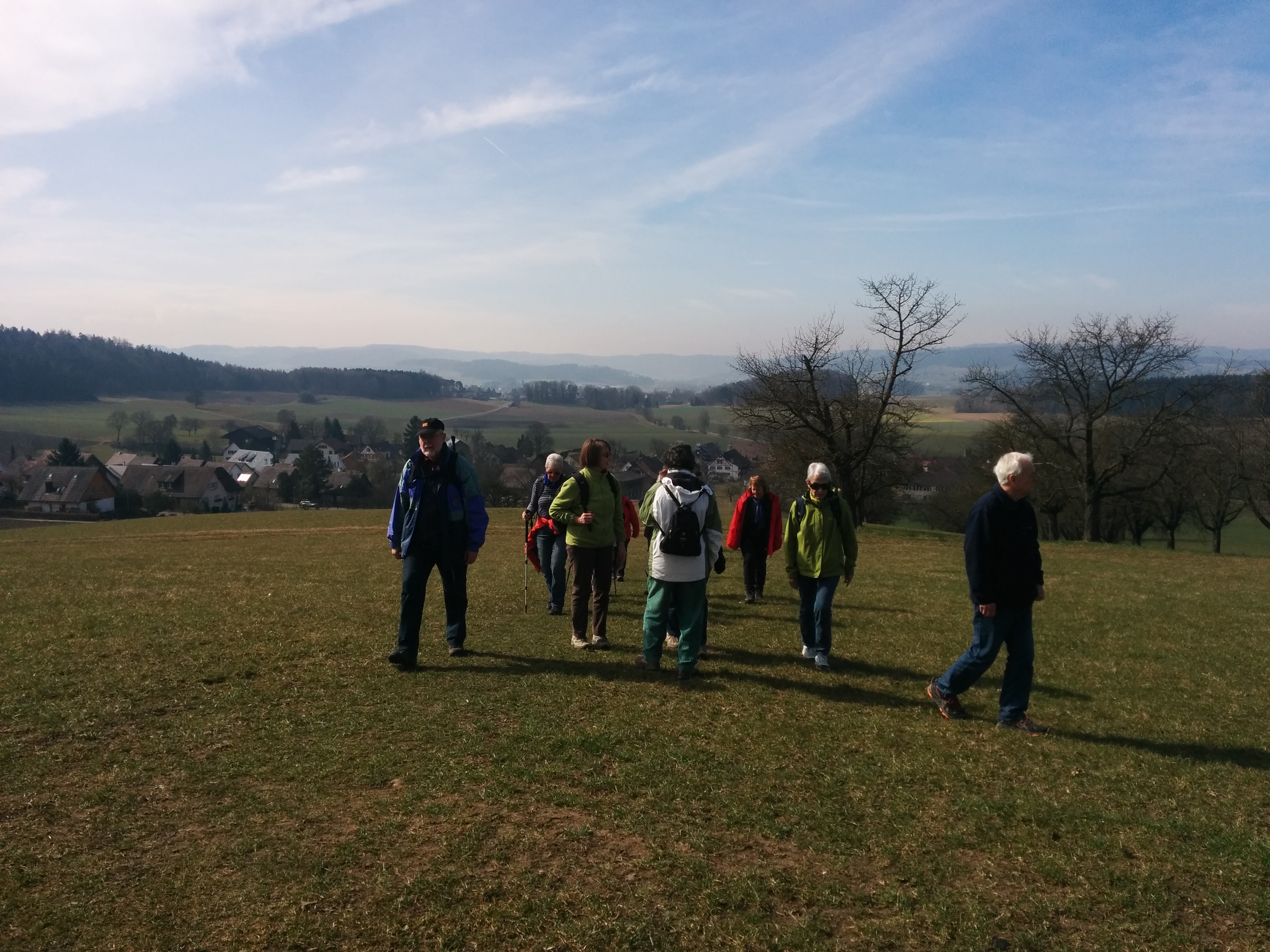 Mit der Bahn fahren wir über ZH-Oerlikon / Winterthur nach Henggart. Ein kurzer Marsch führt uns in Restaurant Sternen zum StartKaffee. Aber gleich schon ziehen wir los, zur Wanderung durch Wälder und über Felder im Zürcher Weinland. Nach gut 2 Stunden stechen wir ins Restaurant Bahnhof in Welsikon; Mittagessen ist angesagt.