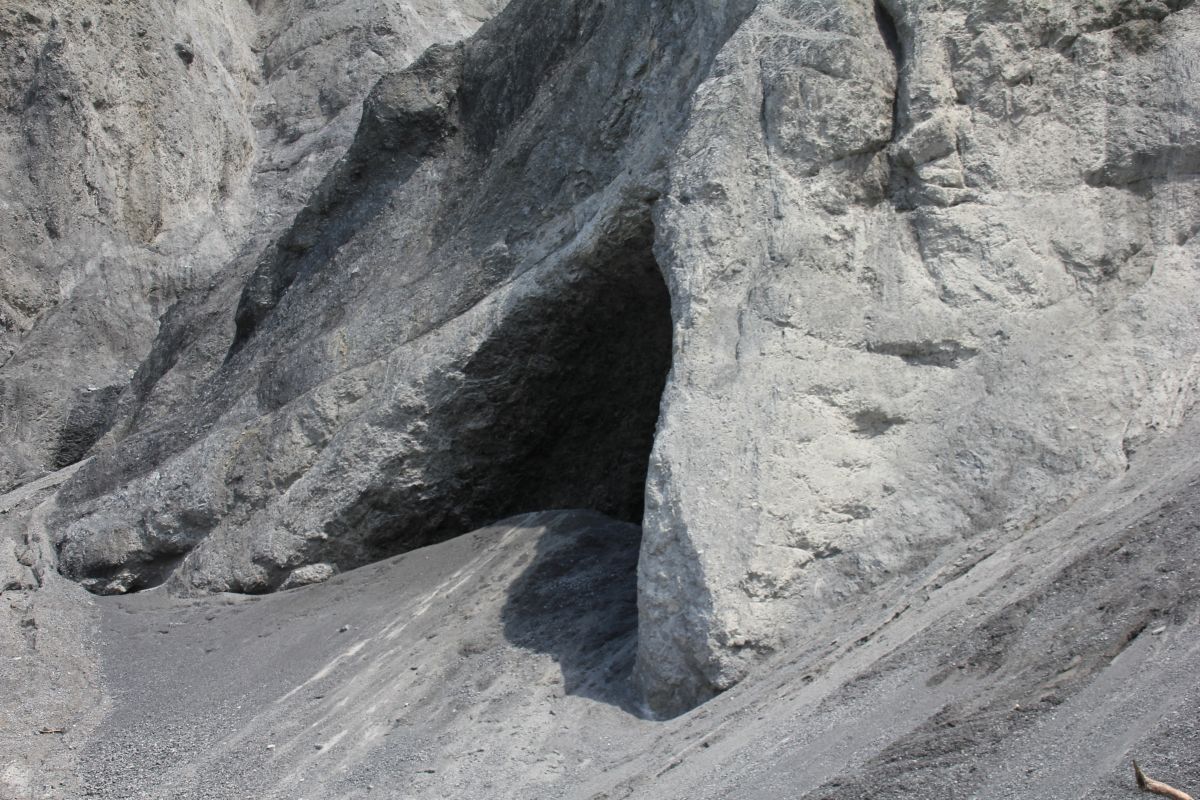 Am Nachmittag wandern wir weiter oberhalb vom Fluss und der Bahnlinien und sehen weitere Felshöhlen und Einschnitte in luftiger Höhe.