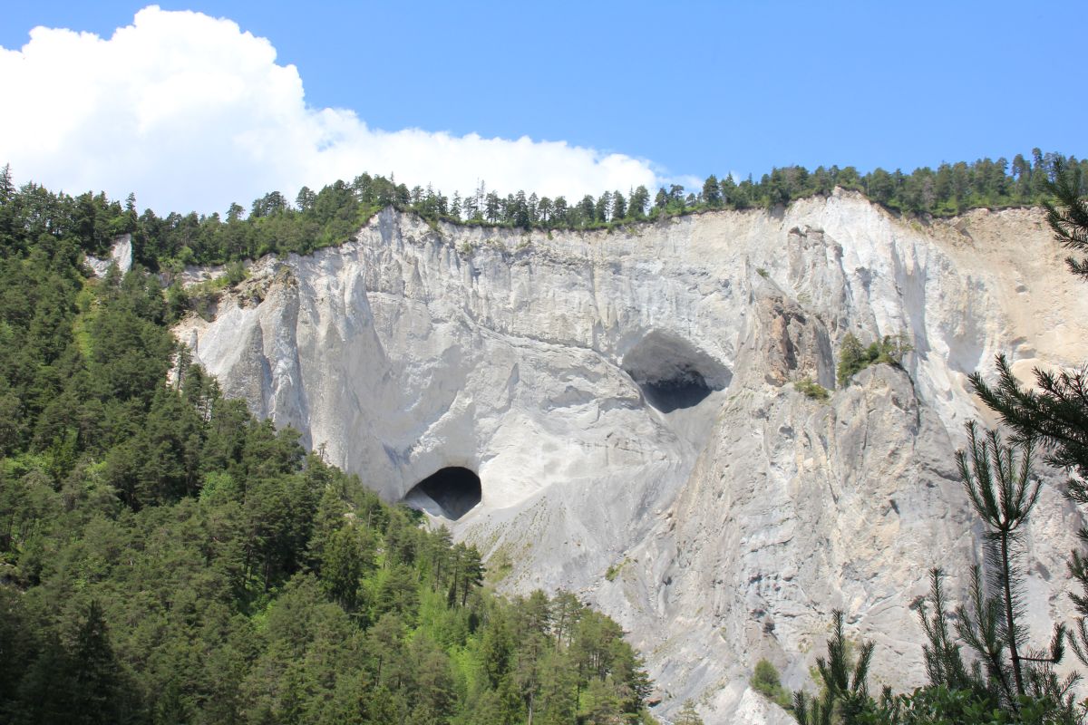 Die Ruinaulta (Rheinschlucht) in Graubünden ist eine der grossartigsten und vielfältigsten Landschaften der Alpen. Eine wilde Schlucht mit einem reissenden Fluss, weissen Steilwänden und weiten Wäldern.