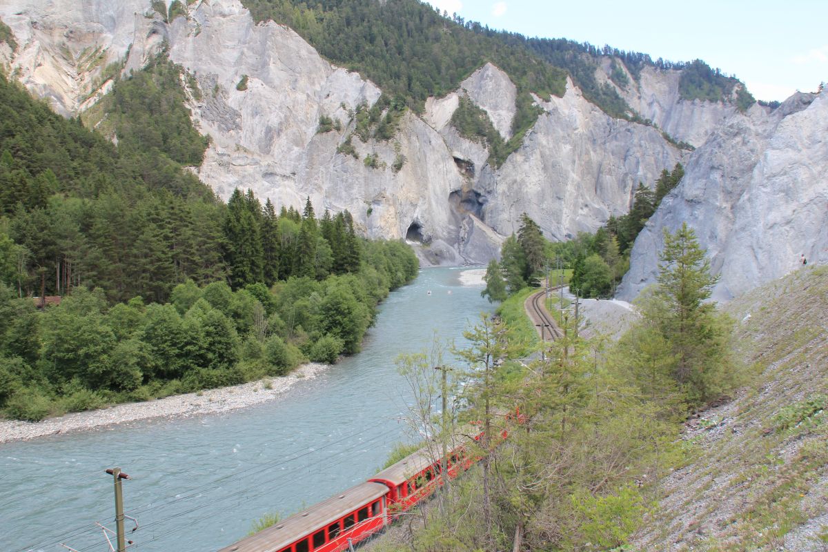 Mit der Bahn fahren wir über Zürich HB, Chur nach Ilanz.